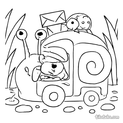 Улиточный фургончик почты с муравьём-почтальоном
