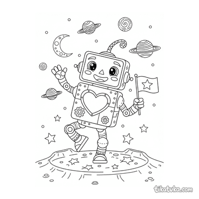 В подборке представлены сюжеты с мальчиком-космонавтом, сажающим флаг на лунной поверхности, и роботом-астронавтом. Также здесь есть волшебные персонажи: единороги с галактической гривой, пони на лунной поляне и сонные феи, устроившиеся в облачных гнездышках. Все 92 изображений — это четкие черно-белые контуры, которые удобно распечатать пачкой для группы детей или раскрашивать прямо на сайте. Просто скачайте понравившиеся картинки, чтобы создать свою красочную лунную историю.