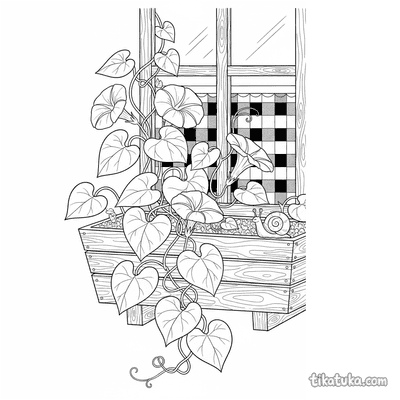 В этом разделе собраны сцены с ипомеей в саду. Лиана вьется по кирпичной стене, украшает оконный ящик и карабкается по садовой решетке. На некоторых рисунках рядом с цветами можно встретить птиц, например поползня, который сидит на скворечнике. Все контуры четкие и крупные, что удобно для юных художников. Вы можете скачать любую из 12 раскрасок одним файлом для быстрой печати пачкой или раскрашивать картинки с ипомеей прямо на сайте.