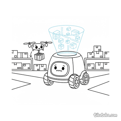 Кибер-курьер проверяет маршрут в подвальном штабе