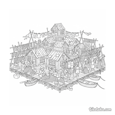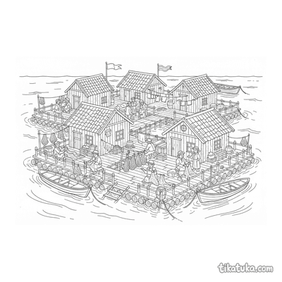 Рыбацкая плавучая деревня на платформе