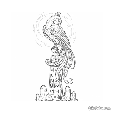 Феникс на рунном обелиске