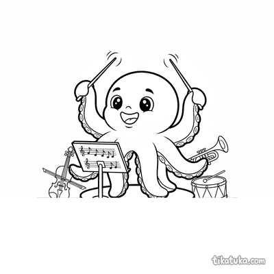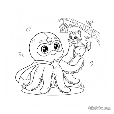 Здесь вы найдёте осьминога-космонавта, пекаря, супергероя и рыцаря. Он ловит рыбу, играет на музыкальных инструментах, разъезжает на фургоне с мороженым и ухаживает за садом. Все сюжеты представлены в виде чётких контурных рисунков, готовых к раскрашиванию. Вы можете скачать все 48 раскрасок с осьминогом одним архивом для удобной печати или раскрашивать картинки прямо на сайте. Контуры специально сделаны жирными, чтобы даже малышам было легко не выходить за границы.