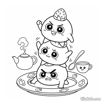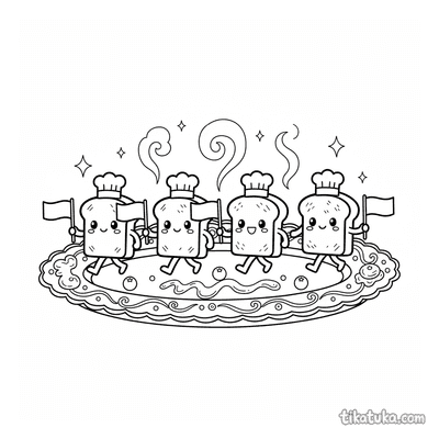 Дети найдут здесь стопки блинов с сиропом и ягодами, кусок пиццы с разными начинками, марширующие тосты-солдатики и празднующие суши-роллы. Есть и фантастические сюжеты, например, инопланетяне, разгружающие тарелку, или чашка боба, балансирующая жемчужинами. Все 16 раскрасок можно скачать одним архивом для удобной печати или раскрашивать прямо на сайте. Контуры четкие и крупные, что подходит для малышей, которые только учатся держать карандаш.