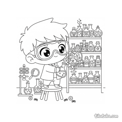 Чиби-мальчик смешивает разноцветные зелья