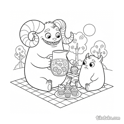 Монстр с кудрявыми рогами делится пуншем