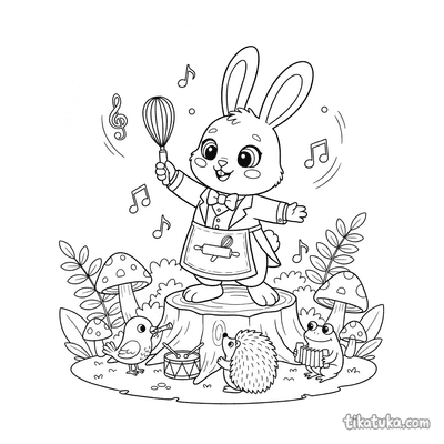 Дети найдут здесь кролика, который нюхает морковку, зайчика-барабанщика и танцора на сцене. Есть и сцены из сказок, например, Колобок, катящийся по лесной тропинке. Все картинки — это четкие черно-белые контуры, которые удобно раскрашивать карандашами или фломастерами. Вы можете скачать все 52 раскраски с кроликом одним архивом или распечатать только понравившиеся сюжеты. Картинки также подходят для раскрашивания прямо на сайте — просто выберите понравившегося зайчика и начинайте творить.