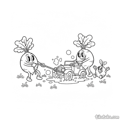 Дети найдут здесь пучки редиски с корнями, семейства редисок в земле и даже сценки, где овощи участвуют в соревнованиях или вытаскивают машину из грязи. Все картинки имеют четкие контуры, что удобно для раскрашивания. Вы можете скачать любую из 10 раскрасок, чтобы распечатать её на принтере или раскрасить прямо на сайте.