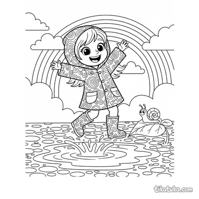 В коллекции представлены сюжеты с детьми в ярких дождевиках и с зонтиками, прыгающими по лужам, утят, резвящихся после дождя, и даже улитку на мокром листе. Все рисунки имеют чёткие контуры и подходят для самых маленьких художников. Вы можете бесплатно скачать любую из 155 раскрасок в хорошем качестве для печати на домашнем принтере. Картинки также удобно раскрашивать прямо на сайте с помощью виртуальных карандашей и красок.