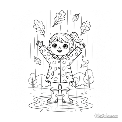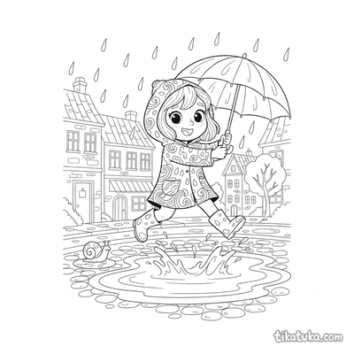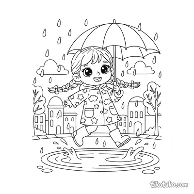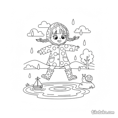 Среди сюжетов вы найдёте девочку, прыгающую по лужам в дождевике, ребёнка с зонтиком под дождём и даже собаку в плаще у фонарного столба. Каждая сцена передаёт атмосферу непогоды и детской радости. Все 36 картинок имеют чёткие контуры, что удобно для самых маленьких художников. Вы можете скачать понравившиеся раскраски с дождевиком одним архивом или раскрашивать их прямо на сайте.