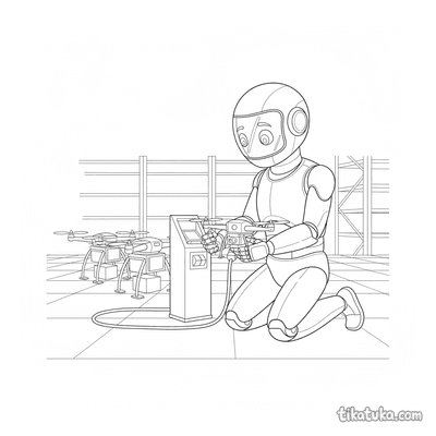 Робот с визором заряжает дронов