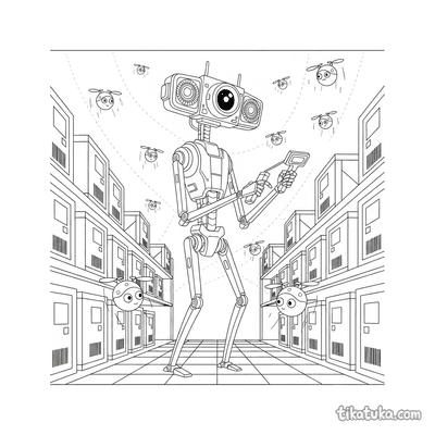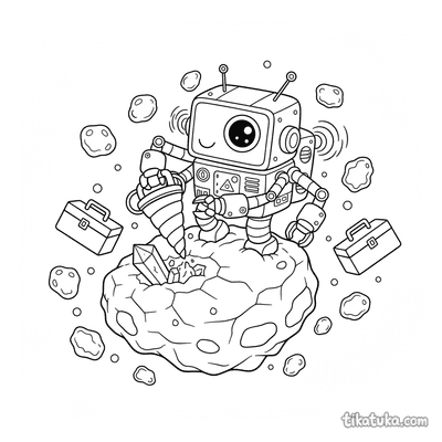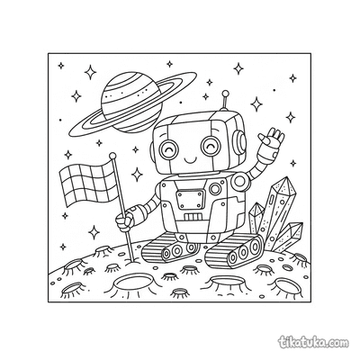 В коллекции представлены сцены с роботами-астронавтами, которые исследуют планеты, чинят спутники на орбите или находятся на космической свалке. Многие картинки включают детализированные космические пейзажи с кольцевыми планетами, лунами и звездами. Все 261 раскраска с роботами доступны для бесплатной загрузки в формате PDF, что удобно для печати целой пачки картинок сразу. Контуры на рисунках четкие и хорошо прорисованные, что позволяет легко раскрашивать их как карандашами, так и в онлайн-редакторе на сайте.