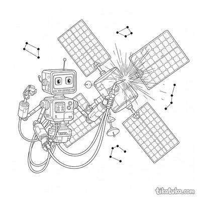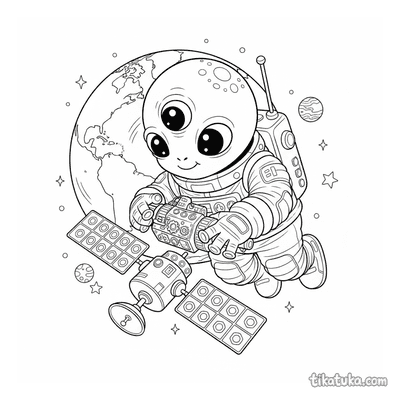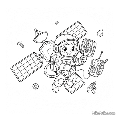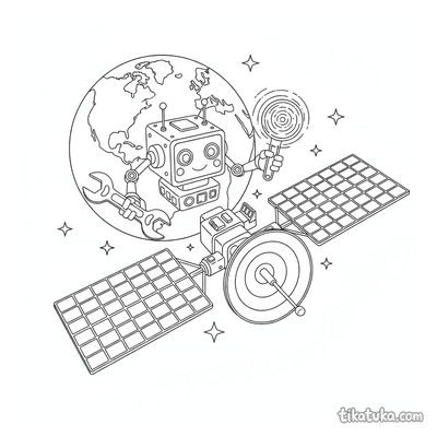 В коллекции представлены спутники с солнечными панелями, сцены, где астронавты или космические роботы их ремонтируют, и общие виды космоса с этими аппаратами. Вы найдёте как отдельные спутники, так и сложные сюжеты, например, работу на космической свалке или рядом с планетой. Все 39 раскрасок со спутником доступны для бесплатной загрузки одним архивом или по отдельности. Чёткие контуры и продуманная детализация делают эти чёрно-белые рисунки удобными для печати и раскрашивания как карандашами, так и в онлайн-редакторе.