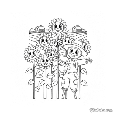 В этой подборке вы найдёте раскраски, где пугало стоит среди поля подсолнухов, наблюдает за пчёлами или держит зонтик под осенним небом. Есть сцены с девочкой на параде урожая, голубем на огороде и даже с гигантской тыквой. Винтажные тракторы, фермерские пони и золотые поля дополняют эти уютные деревенские пейзажи. Все 14 раскрасок с пугалом имеют чёткие контуры, что удобно для самых маленьких художников. Вы можете скачать любую картинку по отдельности или распечатать несколько сразу, чтобы создать целую коллекцию осенних рисунков.
