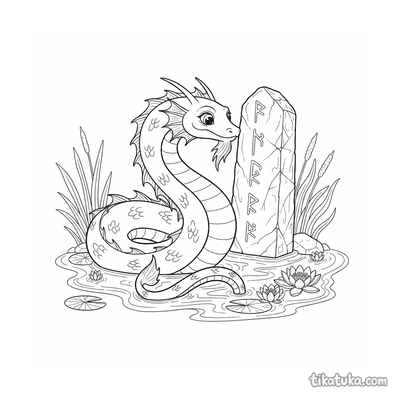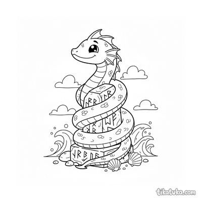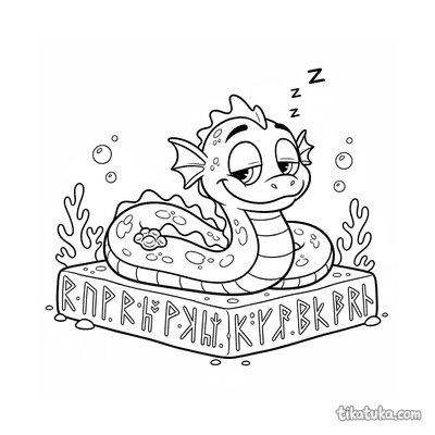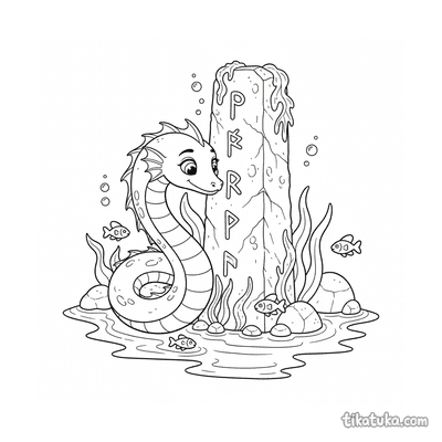 Морской змей на этих картинках взаимодействует с древними артефактами: он обвивает подводные рунные камни и монолиты, дремлет на плитах или игриво плавает среди колонн. Сцены наполнены таинственностью и позволяют пофантазировать о подводном мире. Все 14 раскрасок доступны для бесплатного скачивания одним архивом или по отдельности. Четкие черно-белые линии облегчают раскрашивание как карандашами, так и фломастерами, а также позволяют раскрашивать картинки онлайн прямо на сайте.