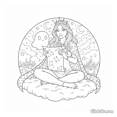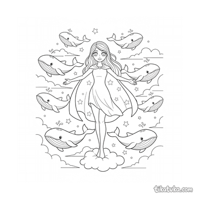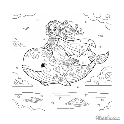 В коллекции представлены сюжеты с крылатым Пегасом, резвящимся на закате, небесным львом со львятами-звёздочками и кит, парящий над дворцом. Есть и современные мотивы: робот на летающей тарелке доставляет пиццу, а бумажный самолёт отправляется в полёт. Все рисунки имеют чёткие контуры, что удобно для раскрашивания карандашами или фломастерами. Вы можете скачать любую понравившуюся картинку или распечатать сразу несколько для творческого занятия с детьми.