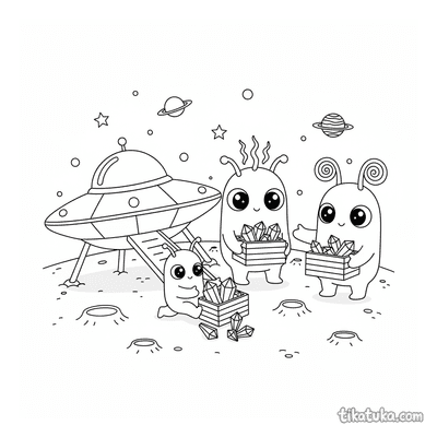В коллекции представлены космические корабли разных видов: от ретро-ракет с плавниками до ракет с инопланетными пилотами. На раскрасках можно увидеть сцены, где ракета летит у кольцевой планеты, астронавт сажает флаг на астероиде или робот-астронавт исследует космическое пространство.