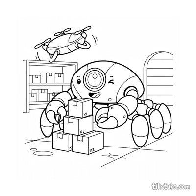 Крабообразный робот складывает коробки