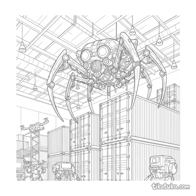 Паук-мех обследует склад