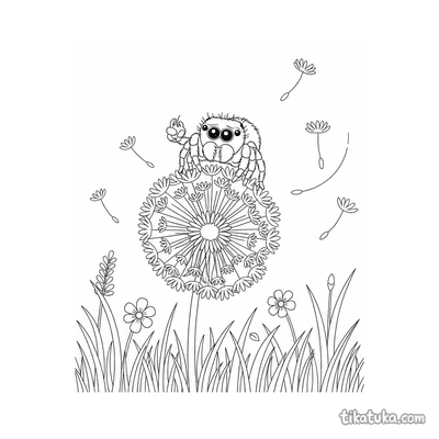 Пятнистый паук-скакун на одуванчике