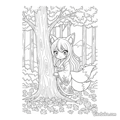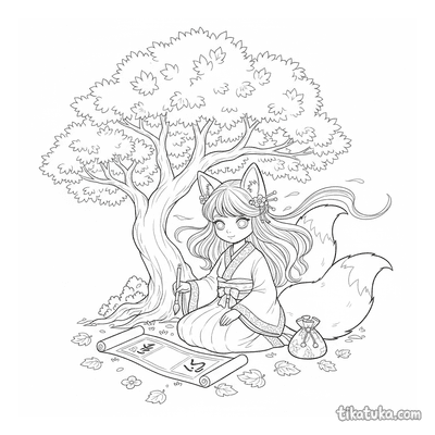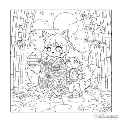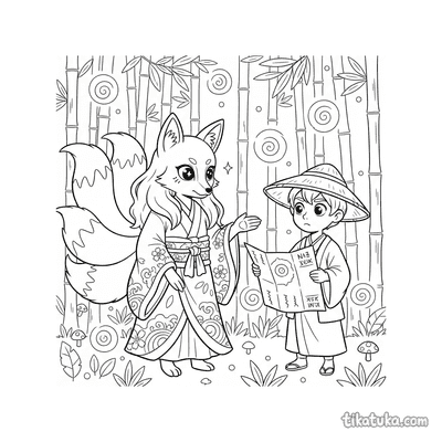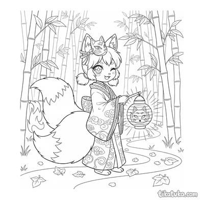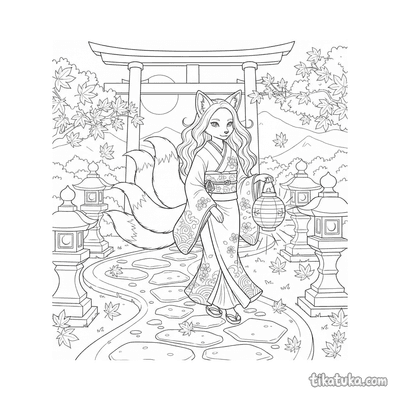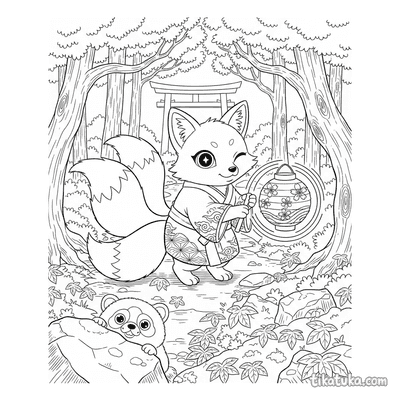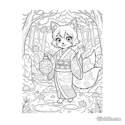 В этом разделе вы найдете раскраски с духами. Среди них есть дух кицунэ с фонарём в саду храма, радостный дух ветра в зале лабиринта и дух ветра в горном храме. Также есть дух кицунэ, собирающий осенние листья в лесу, и дух кицунэ, ведущий путника через бамбуковый лес. Все 32 раскраски выполнены в виде четких контуров, что позволяет легко их распечатать целой пачкой для занятия в группе или скачать по одной для онлайн-раскрашивания на планшете. Черно-белые линии специально сделаны жирными, чтобы даже маленьким детям было удобно закрашивать детали, не выезжая за границы.