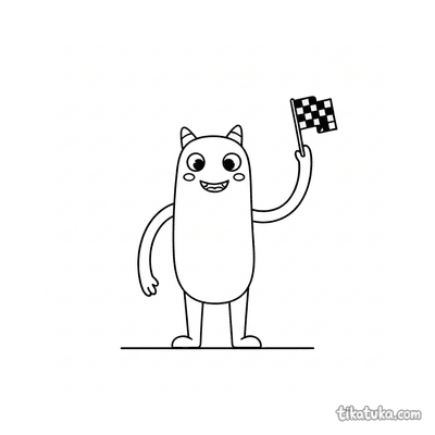 Монстр с длинными руками машет флажком