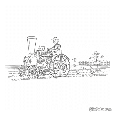 На этой странице собраны раскраски с трактором. Все изображения посвящены старинной и винтажной технике, работающей на пару. Тракторы здесь — главные герои сельских и полевых сцен.
