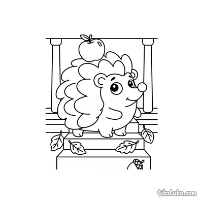 Ёжик с яблоком на ступеньках веранды