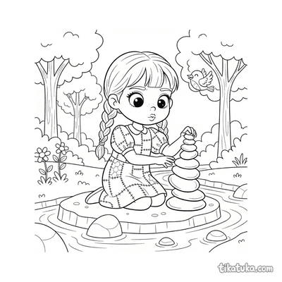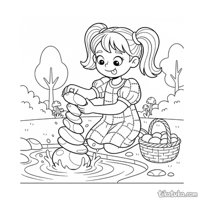 На странице собраны сюжеты, где камни играют ключевую роль: Гензель бросает камешек, русалка отдыхает на валуне, а снежный барсёнок карабкается по уступу. Вы встретите дружелюбных каменных монстров и циклопов, любопытную ламу, выглядывающую из-за скалы, и девочку, строящую башню из камней на пляже.