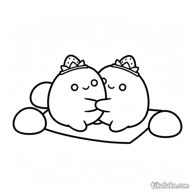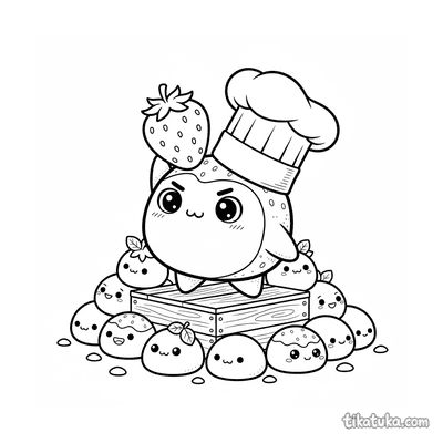 В подборке представлены разнообразные сюжеты с клубникой: стопка блинов с ягодами, клубничные моти, которые обнимаются или играют в чехарду, повар на горе из ягод и даже целый оркестр с клубничными инструментами. Есть и более спокойные сцены, например, сонный моти, укрытый клубничным одеялом, или стеснительный персонаж, прячущийся за ягодой. Все контуры на картинках четкие и хорошо прорисованные, что удобно для юных художников. Вы можете скачать любую понравившуюся раскраску с клубникой отдельно или распечатать несколько страниц сразу, чтобы создать свою собственную ягодную коллекцию для творчества.