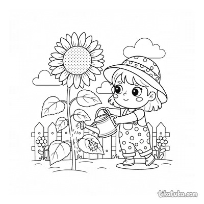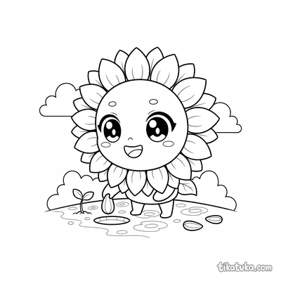 В этом разделе вы найдете раскраски с подсолнухами в разных ситуациях: девочка-садовник сажает семечко или поливает гигантский цветок, дружелюбный зомби ухаживает за растениями, а животные, вроде хаски Лутика, голубя или енота Шмяка, прячутся в подсолнуховом поле. Каждая картинка рассказывает небольшую историю о заботе, природе и летнем настроении.