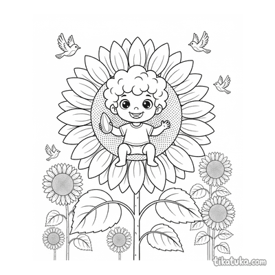 Подсолнух — это яркий и узнаваемый цветок, который часто встречается в детских раскрасках. На этой странице собраны черно-белые картинки, посвященные этому солнечному растению. Сюжеты включают как сами цветы, так и связанные с ними сценки.