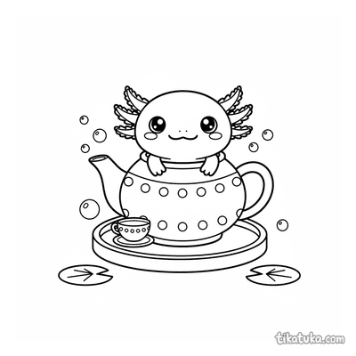 Аксолотль выглядывает из керамического чайника