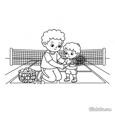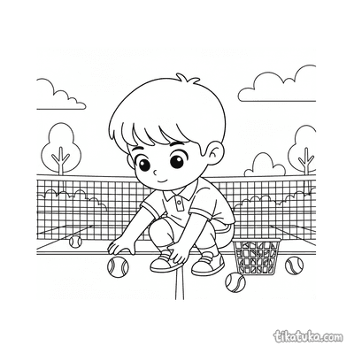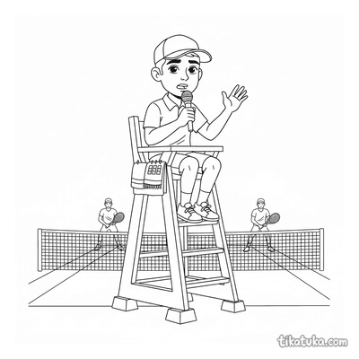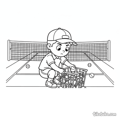 В подборке вы найдете сцены с юными теннисистами, которые подают мяч или отрабатывают бэкхенд, линейных судей и рефери на вышке. Есть и забавные сюжеты, например, кролик с ракеткой или робот-судья, а также натюрморты с инвентарем. Все 93 раскраски можно скачать одним архивом для быстрой печати целой пачки или раскрашивать прямо на сайте. Контуры на рисунках четкие и простые, что подходит для детей разного возраста.
