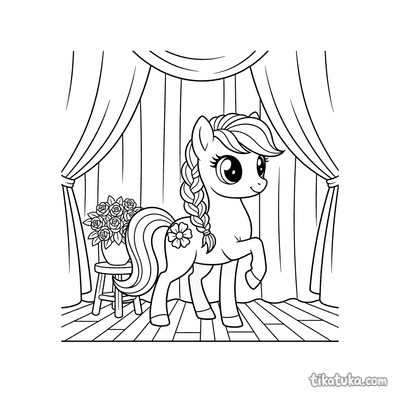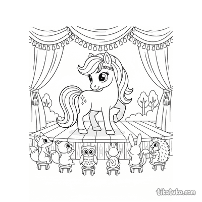 На странице представлены сцены из театральных постановок и закулисья. Дети увидят пони-балерину на сцене, репетиции, кукловода и рабочих сцены за кулисами, а также финальный поклон артистов. Все рисунки выполнены в чётких контурах, что позволяет легко раскрашивать их карандашами или фломастерами. Вы можете скачать все 15 раскрасок одним архивом для удобной печати или раскрашивать понравившиеся сцены прямо на сайте.