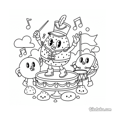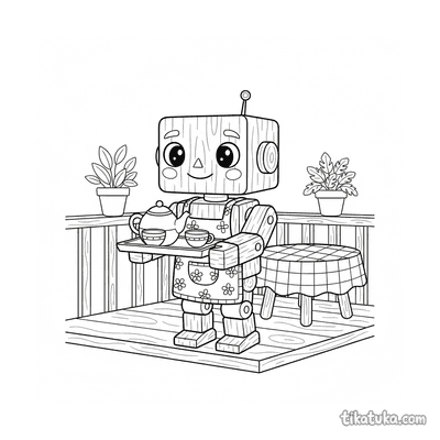 В этой подборке поднос появляется в самых разных ситуациях: моти-повар балансирует ягодой на подносе, деревянный робот подает чай на веранде, а девочка раздает кексы. Вы найдете сцены парада, оркестра и даже монстра, несущего напитки. Все 11 раскрасок выполнены в четких черно-белых контурах, что идеально подходит для детского творчества. Вы можете скачать всю коллекцию одним архивом для удобства или сразу раскрасить любую понравившуюся сцену прямо на сайте.