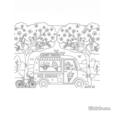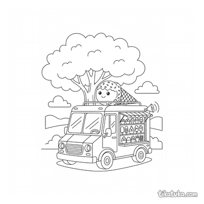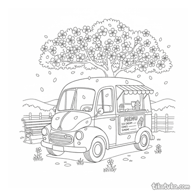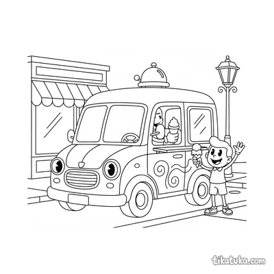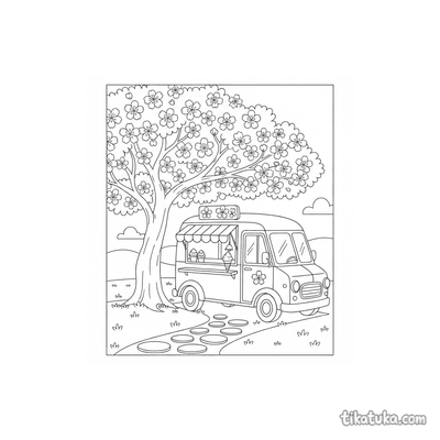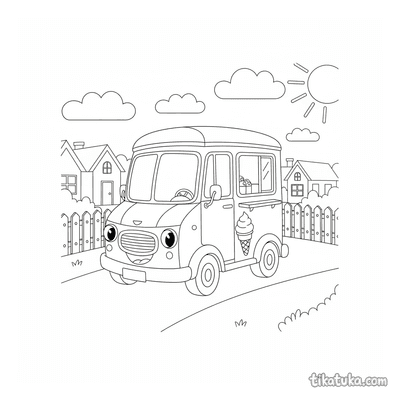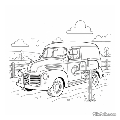 Здесь вы найдете сцены с самосвалами на стройке, винтажными фургонами мороженого с цветочными узорами, почтовыми грузовиками в виде улиток и другими интересными машинами. Все контуры четкие и подходят для детского творчества.