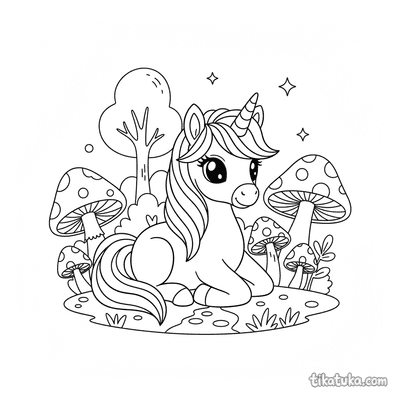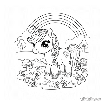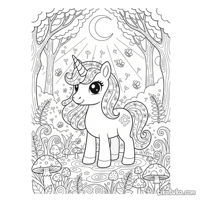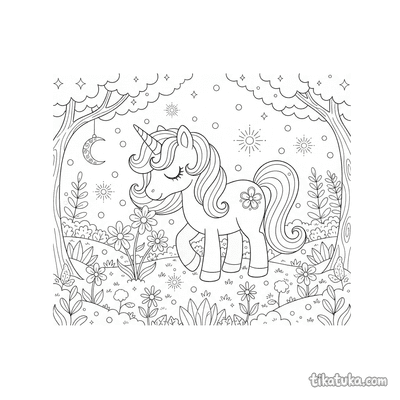 В коллекции вы найдете сцены, где единорог отдыхает у радужного водопада или в ледяной пещере, резвится на лугу или на пляже с ракушками. Есть картинки с жеребенком единорога, спящим на клевере, или с волшебным пони, чья грива сияет, как галактика. Всего доступно 153 контурных рисунков.
