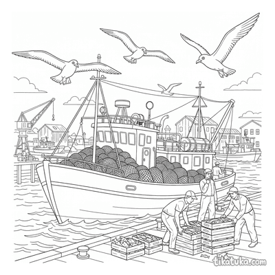В разделе представлены сцены разгрузки припасов у штаба, выгрузки улова с рыболовного траулера в порту и работы кранового грузовика. Также есть картинки с водителями, разгружающими ящики, и даже фантастический робот, разгружающий дрон. Все 19 раскрасок имеют четкие контуры, что удобно для юных художников. Вы можете скачать любую понравившуюся сцену разгрузки одним файлом для печати или раскрасить её прямо на сайте.