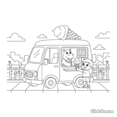 Ретро фургон с мороженым и улыбающимся рожком на крыше