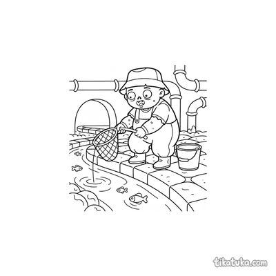 Зомби-рыбак с сетью в коллекторе