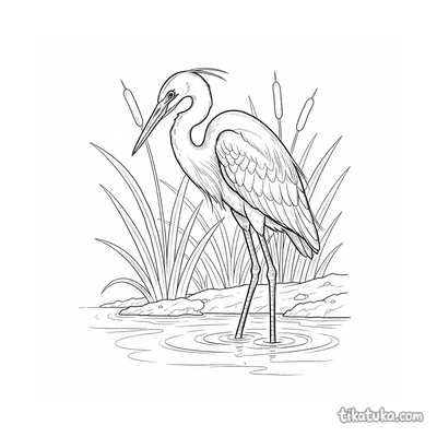 Цапля, стоящая неподвижно на мелководье ручья
