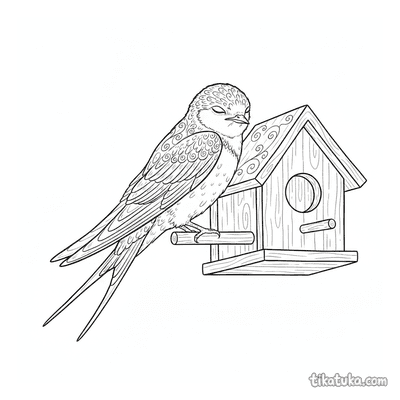 Ласточка отдыхает на скворечнике