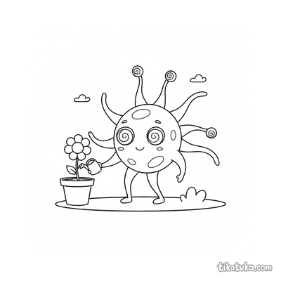 В коллекции представлены сюжеты, где девочки-садоводы поливают гигантские подсолнухи и грибные домики, а роботы ухаживают за кристальными растениями в космосе. Здесь же можно найти дружелюбного зомби-садовода и микробов с лейками, которые превращают садоводство в настоящее приключение. Все контуры четкие и понятные, что позволяет легко раскрашивать даже сложные детали вроде платья из лоскутков или звездчатой формы микроба. Вы можете скачать всю подборку или распечатать только понравившиеся картинки, чтобы сразу приступить к творчеству.