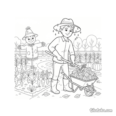 Садовник собирает листья под дождём
