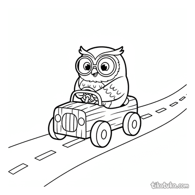 Совёнок Ух за рулём ретро машинки
