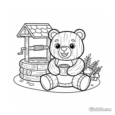 Деревянный мишка-страж у колодца