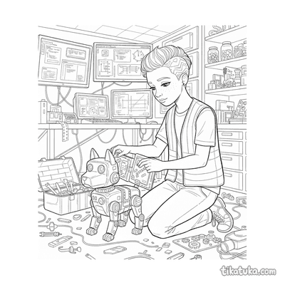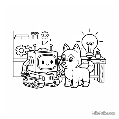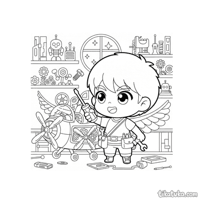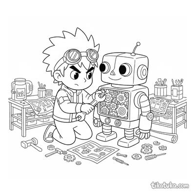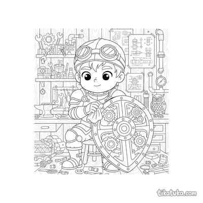 На страницах этой подборки дети встретят рыцаря-часовщика, полирующего шестерёнчатый щит, мальчика-изобретателя, тестирующего летающую тарелку, и робота, жонглирующего шестерёнками. Также здесь есть дружелюбные роботы, хаски-механики, озадаченные офисные коты и другие обитатели творческой мастерской. Все 53 раскраски доступны для скачивания в формате PDF, что удобно для печати целой серии картинок сразу. Четкие контуры и продуманные детали на каждом листе помогают юным художникам сосредоточиться на творчестве без лишних сложностей.