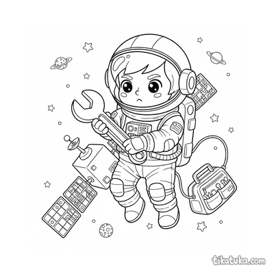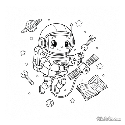 В этом разделе собраны раскраски, где персонажи испытывают состояние невесомости. Вы найдёте космонавтов, чинящих спутник, и отважных животных-астронавтов вроде енота Шмяка или осьминожки Бублика в открытом космосе. Есть сцены с пингвином на космической кухне астероида, кроликом-пекарем и мальчиком-космонавтом, встречающим космическую медузу.